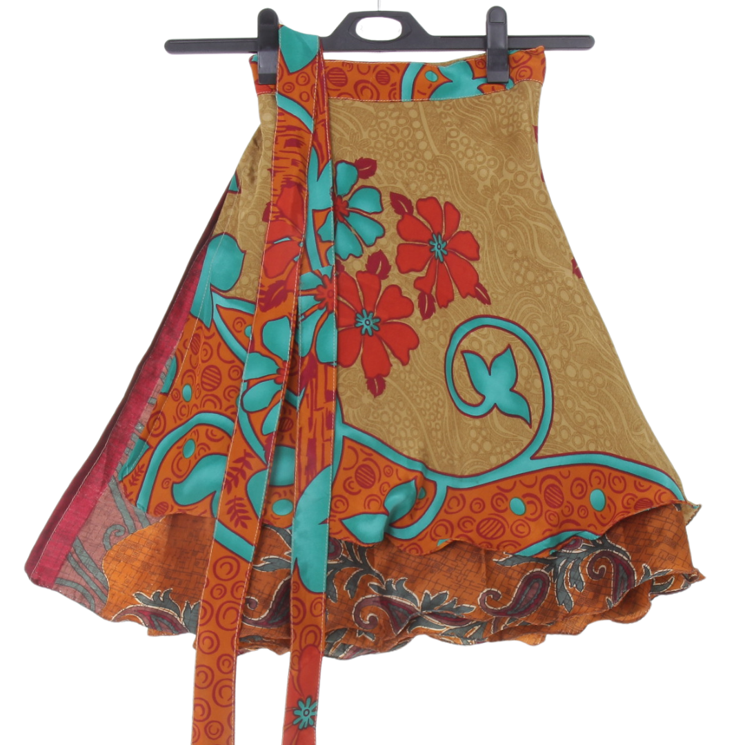 Tento konkrétní kus byl upcyklován ze slavnostního sárí a byl již rozbalen a využit pro focení a videopropagační účely.