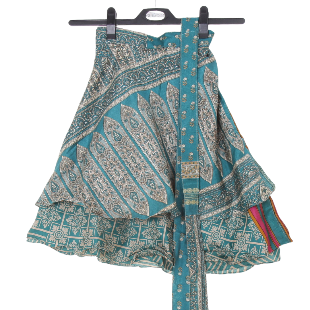 Tento konkrétní kus byl upcyklován ze slavnostního sárí a byl již rozbalen a využit pro focení a videopropagační účely.