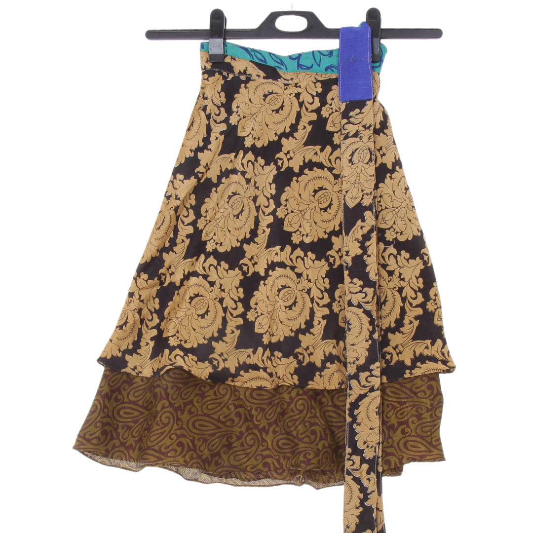 Tento konkrétní kus byl upcyklován ze slavnostního sárí a byl již rozbalen a využit pro focení a videopropagační účely.