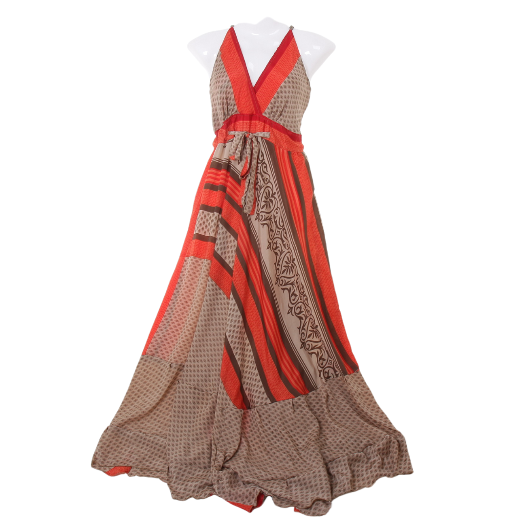 Tento konkrétní kus byl vytvořen formou upcyklingu ze slavnostního sárí a byl již rozbalen a použit pro focení a videopropagační účely. Vyberte si šaty střih Vesna a získáte nejen stylový kousek oblečení, ale i jedinečný kus s příběhem.
