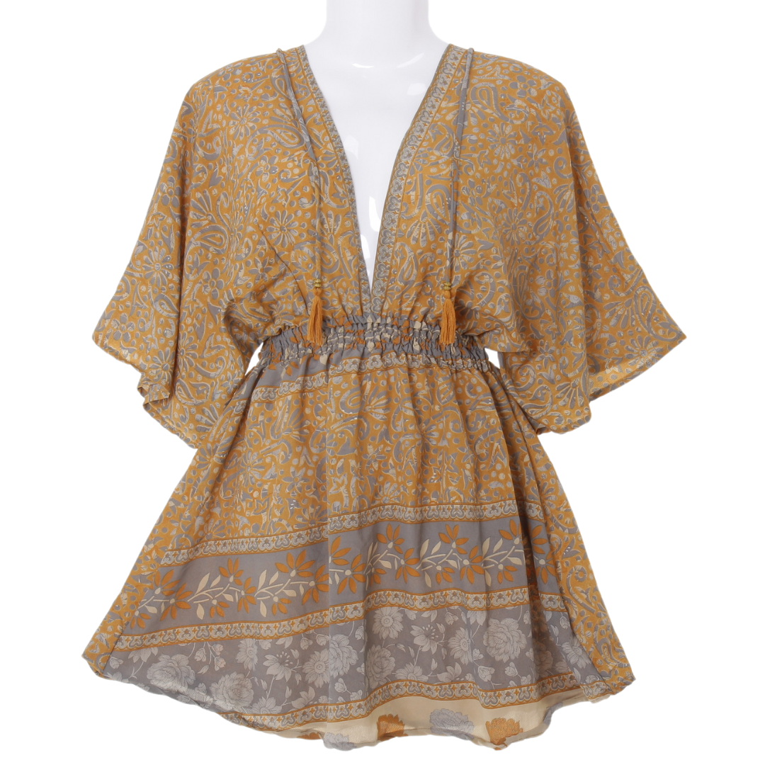Tento konkrétní kus byl vytvořen formou upcyklingu ze slavnostního sárí a byl již rozbalen a využit pro focení a videopropagační účely. Vyberte si šaty střih Cassiopeia a získáte nejen stylový kousek oblečení, ale i jedinečný kus s příběhem.