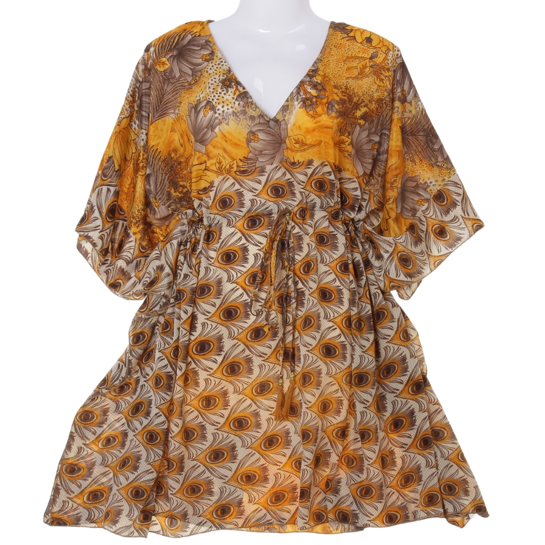 Tato tunika vznikla formou upcyclingu z použitého slavnostního sárí. Byla rozbalena a použita pro focení a videopropagační účely, a nyní čeká na svou novou majitelku, která ocení jak její krásu, tak i ekologickou hodnotu.