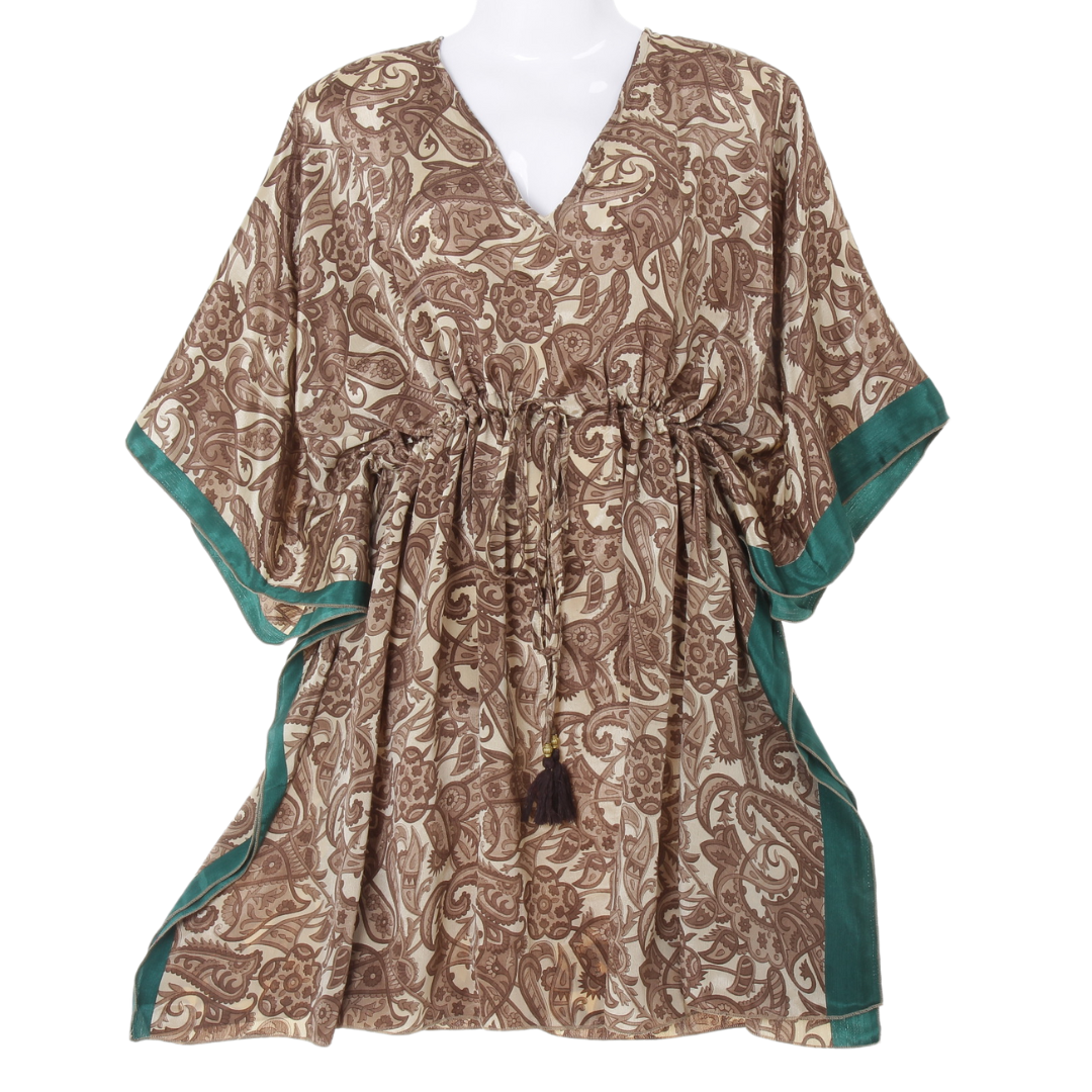 Tato tunika vznikla formou upcyclingu z použitého slavnostního sárí. Byla rozbalena a použita pro focení a videopropagační účely, a nyní čeká na svou novou majitelku, která ocení jak její krásu, tak i ekologickou hodnotu.