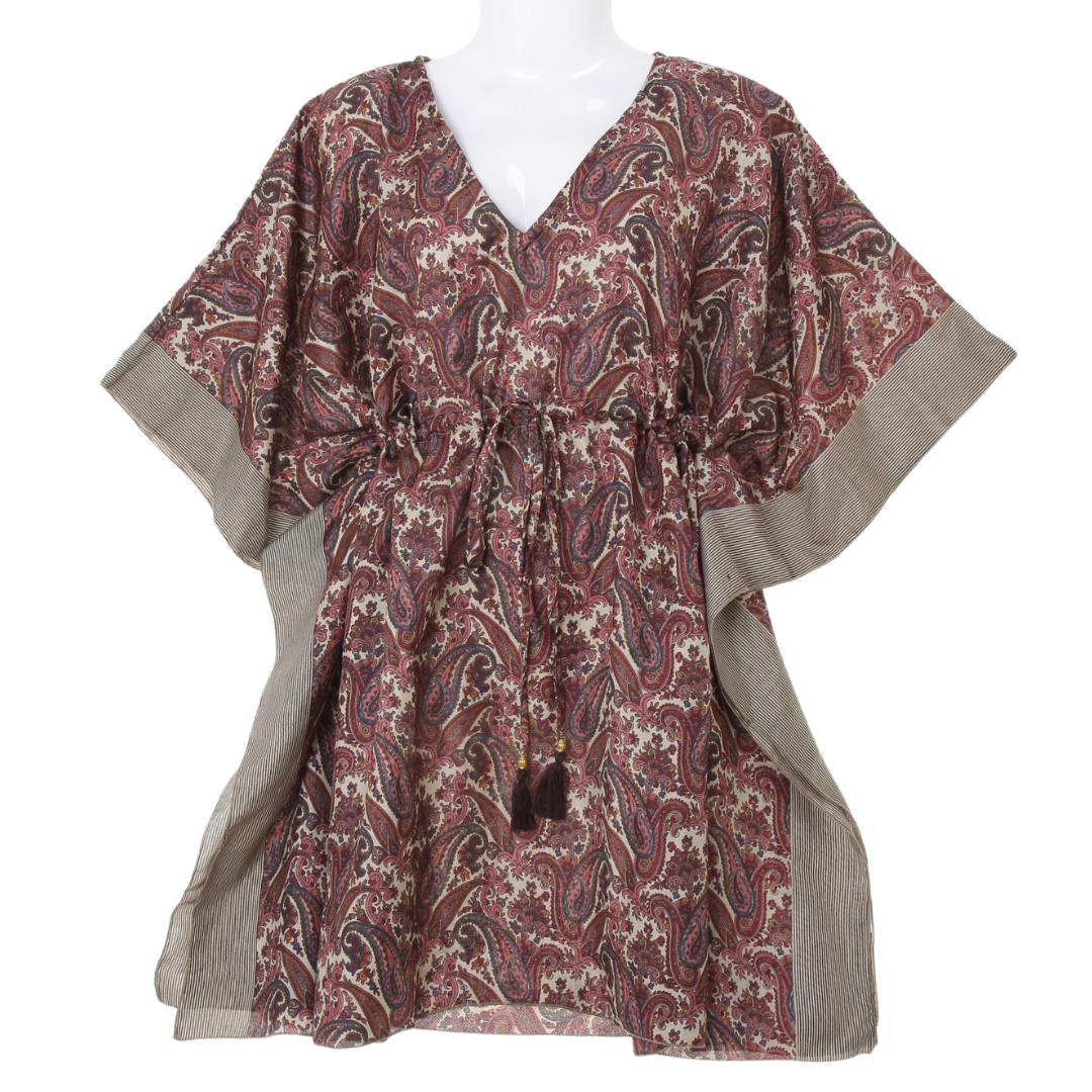 Tato tunika vznikla formou upcyclingu z použitého slavnostního sárí. Byla rozbalena a použita pro focení a videopropagační účely, a nyní čeká na svou novou majitelku, která ocení jak její krásu, tak i ekologickou hodnotu.