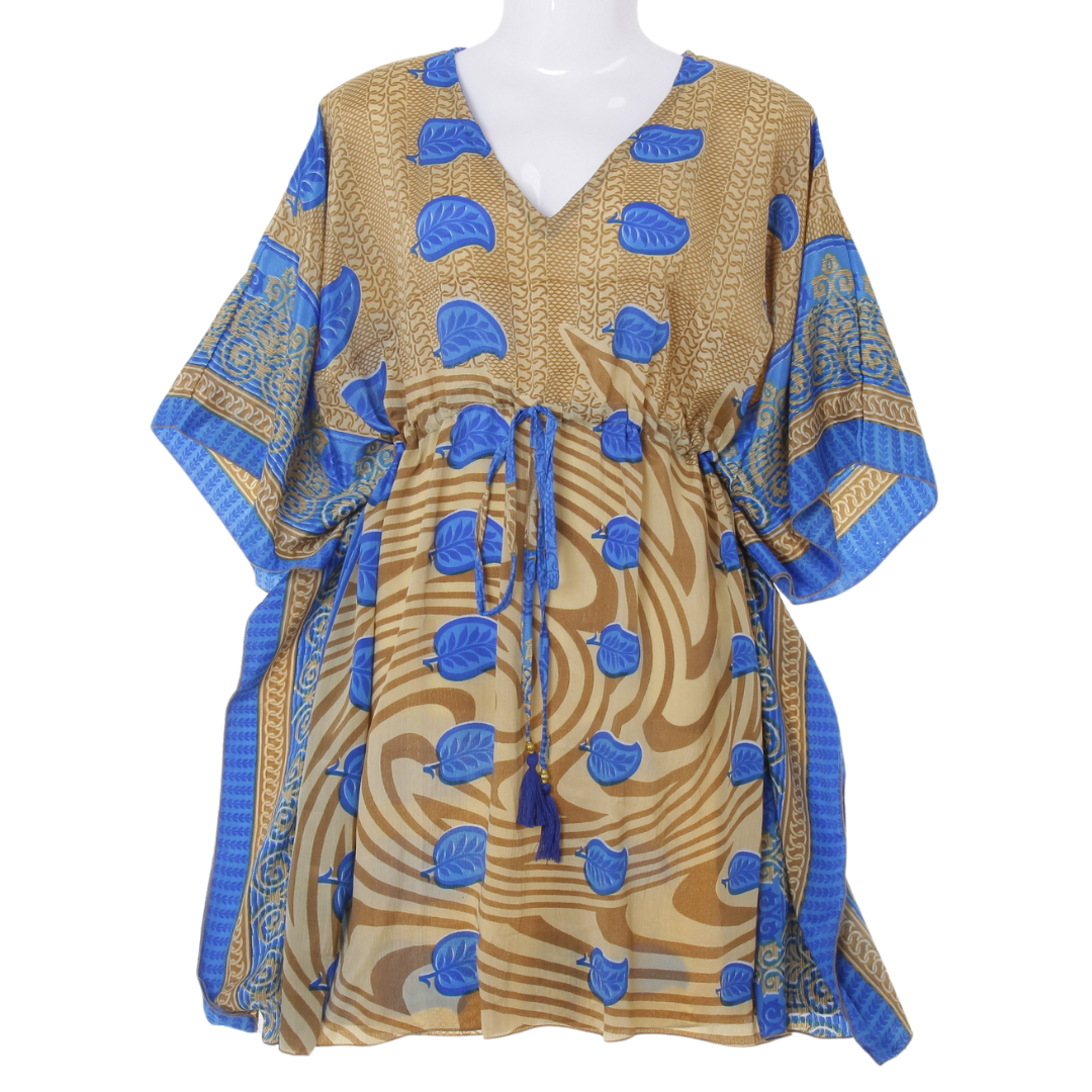 Tato tunika vznikla formou upcyclingu z použitého slavnostního sárí. Byla rozbalena a použita pro focení a videopropagační účely, a nyní čeká na svou novou majitelku, která ocení jak její krásu, tak i ekologickou hodnotu.