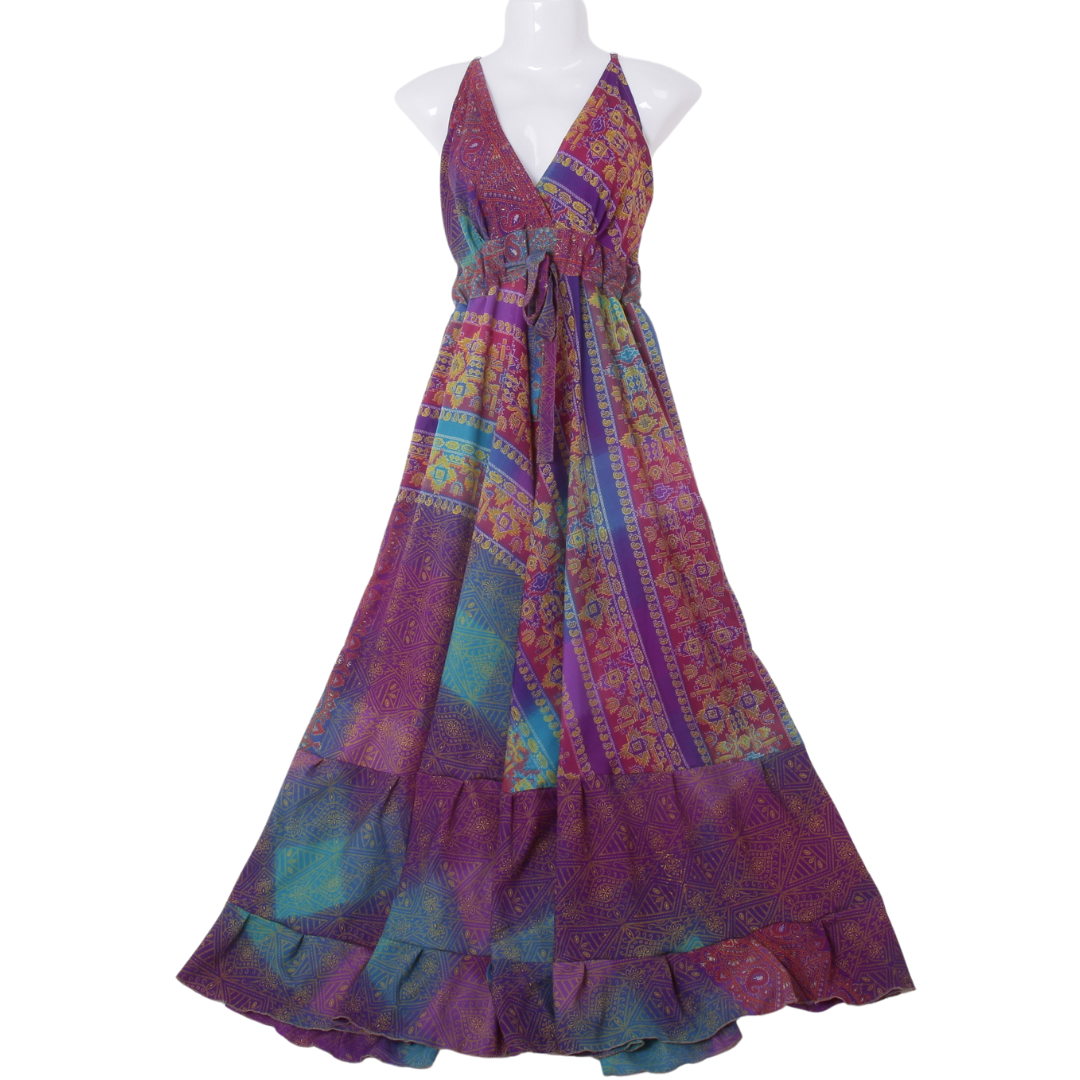 Tento konkrétní kus byl vytvořen formou upcyklingu ze slavnostního sárí a byl již rozbalen a použit pro focení a videopropagační účely. Vyberte si šaty střih Vesna a získáte nejen stylový kousek oblečení, ale i jedinečný kus s příběhem.