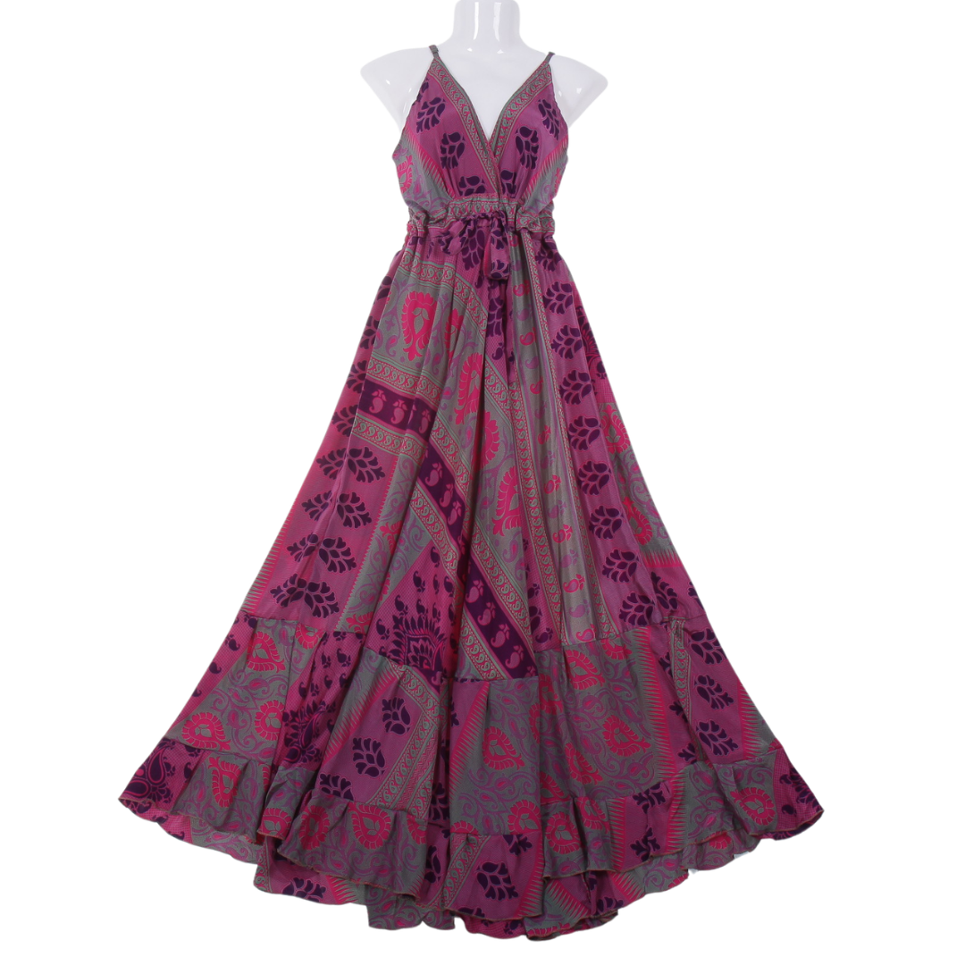 Tento konkrétní kus byl vytvořen formou upcyklingu ze slavnostního sárí a byl již rozbalen a použit pro focení a videopropagační účely. Vyberte si šaty střih Vesna a získáte nejen stylový kousek oblečení, ale i jedinečný kus s příběhem.