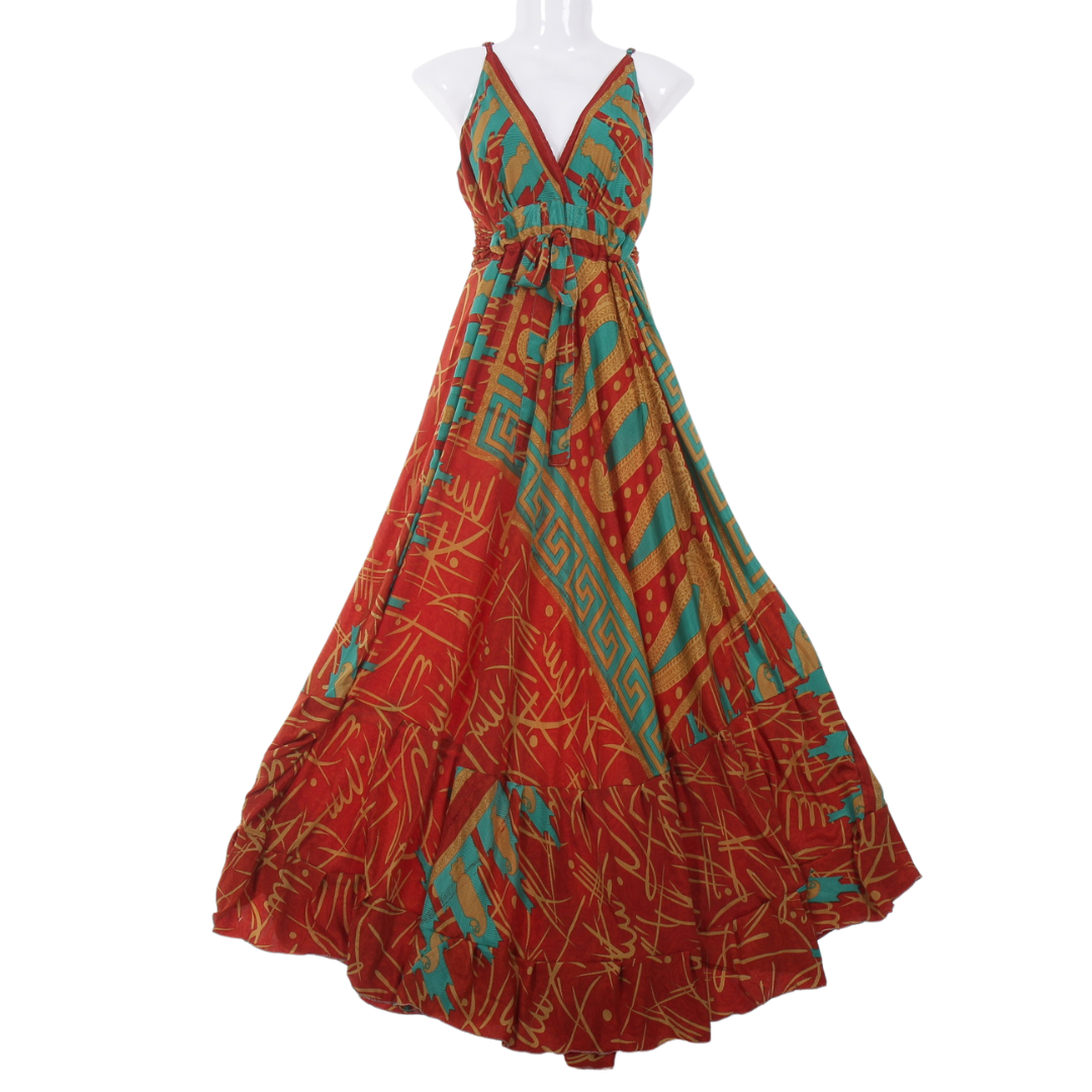 Tento konkrétní kus byl vytvořen formou upcyklingu ze slavnostního sárí a byl již rozbalen a použit pro focení a videopropagační účely. Vyberte si šaty střih Vesna a získáte nejen stylový kousek oblečení, ale i jedinečný kus s příběhem.