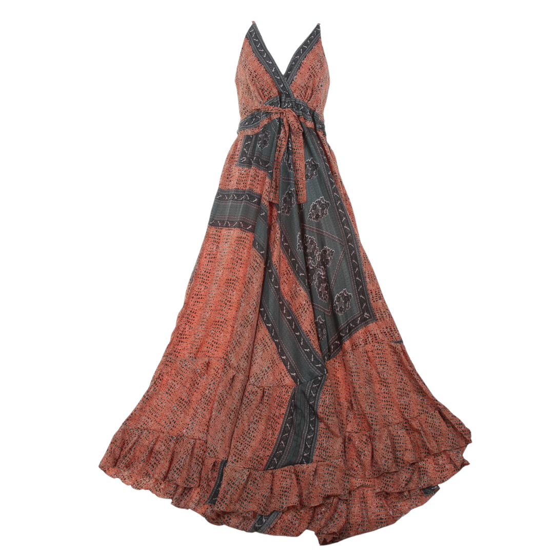 Tento konkrétní kus byl vytvořen formou upcyklingu ze slavnostního sárí a byl již rozbalen a použit pro focení a videopropagační účely. Vyberte si šaty střih Vesna a získáte nejen stylový kousek oblečení, ale i jedinečný kus s příběhem.