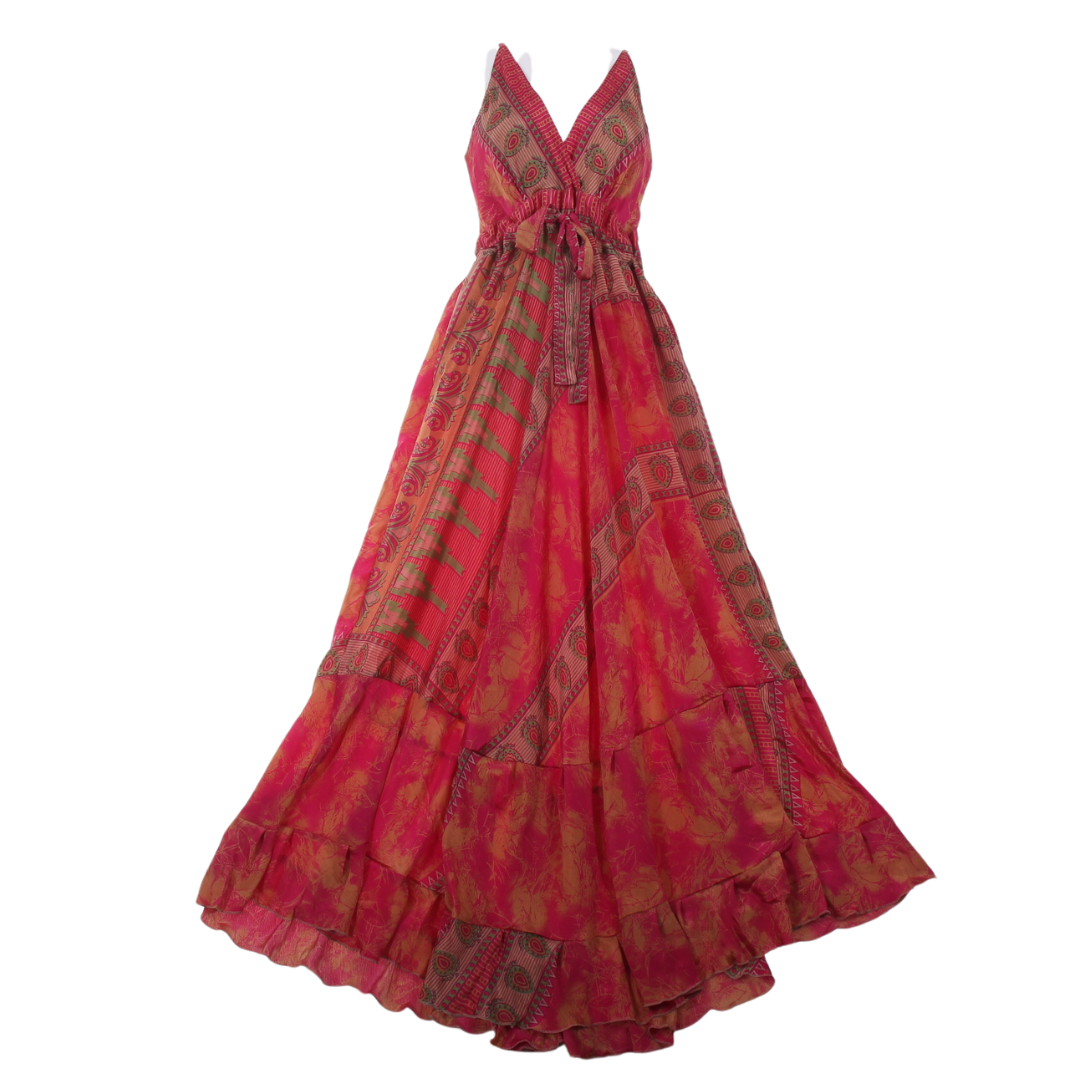 Tento konkrétní kus byl vytvořen formou upcyklingu ze slavnostního sárí a byl již rozbalen a použit pro focení a videopropagační účely. Vyberte si šaty střih Vesna a získáte nejen stylový kousek oblečení, ale i jedinečný kus s příběhem.