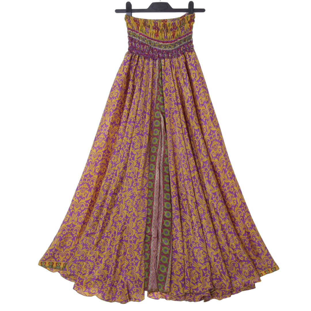 Tyto unikátní kousky jsou vytvořeny formou upcyclingu ze slavnostního sárí, každý z nich má svůj jedinečný příběh a charakter. Pro každou ženu odvážnou jako Shahrazad jsou k dispozici v univerzálních velikostech 32-50. Vyberte si kalhotovou sukni Shahrazad a prožijte pohádku každý den.